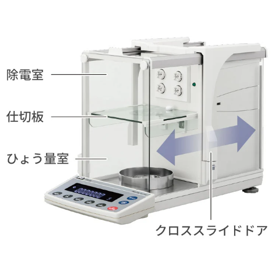 • 沒有雙層擋風也能實現(xiàn)高精度、寬的量量室,如果拆下隔板就可以用燒杯和汽缸進            行量量